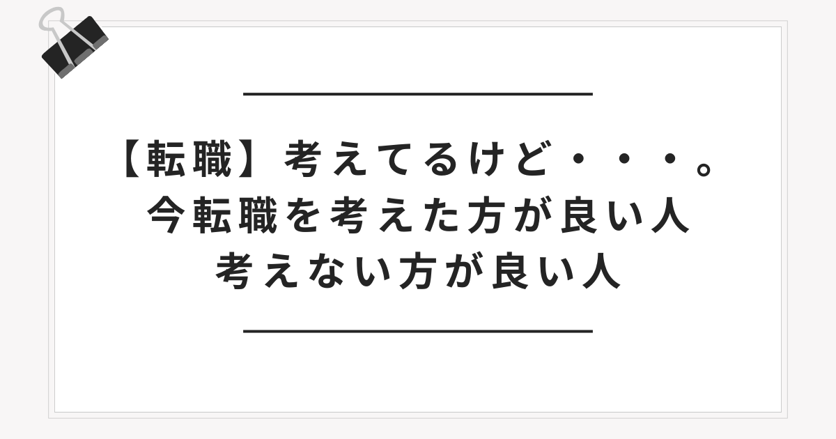 【転職】転職を考えてるけど・・・。今転職を考えた方が良い人/考えない方が良い人